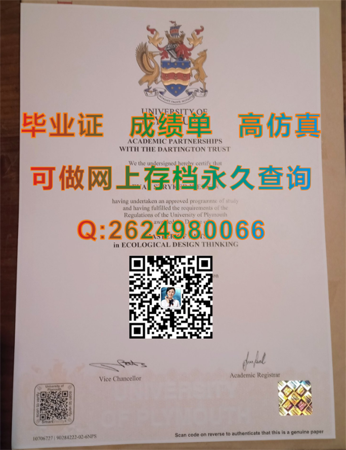 英国普利茅斯大学毕业证、文凭、成绩单、学历认证书|University of Plymouth diploma|教育部留信网认证永久查询