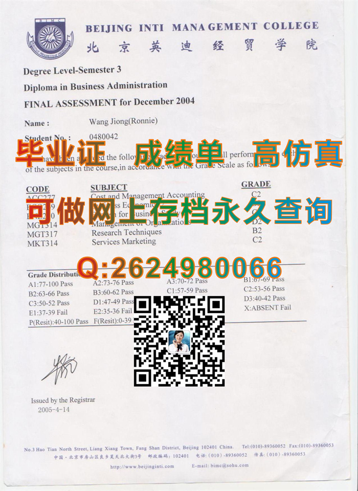北京英迪经贸学院成绩单样本