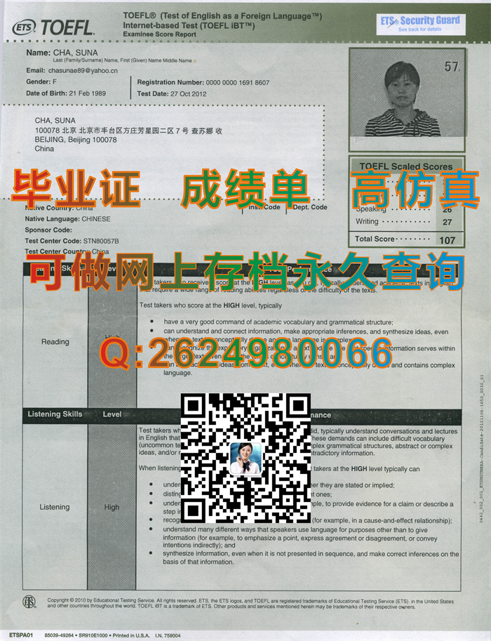 真实原版托福成绩单样本|购买托福成绩单多少钱|TOEFL成绩单|哪里可以办托福成绩单|国外大学成绩单模版