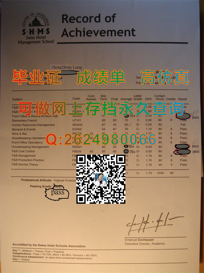 瑞士酒店管理学院毕业证、文凭、成绩单、学位证定制|瑞士文凭样本|国外毕业证购买|真实教育部留信网认证代办