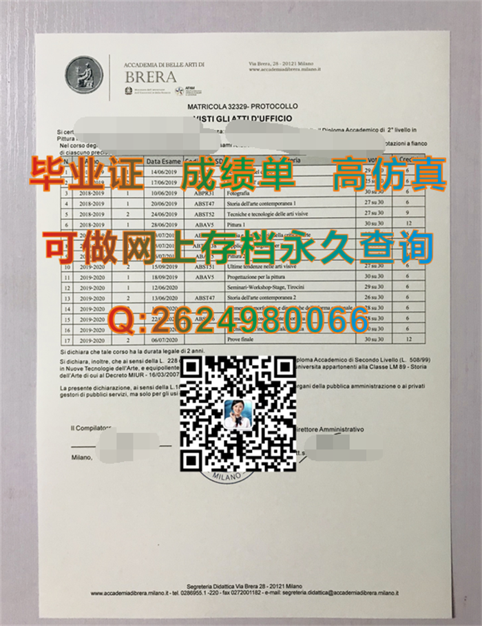 意大利布雷拉美术学院毕业证、文凭、成绩单、学位证书制作|国外文凭样本|Accademia di belle arti di Brera diploma