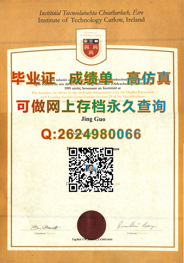 爱尔兰卡罗理工学院毕业证PDF电子版图片制作|爱尔兰大学文凭样本|爱尔兰卡罗理工学院成绩单购买