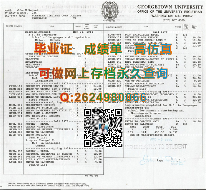 美国乔治城大学毕业证文凭成绩单模版|真实可查留信网认证|美国本科文凭样本|乔治敦大学毕业证|GU成绩单