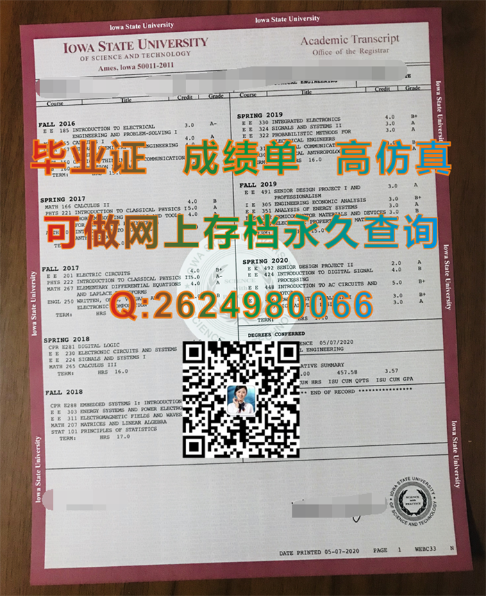 爱荷华州立大学毕业证、文凭、成绩单定制|Iowa State University文凭|美国ISU毕业证样本|美国学历学位认证书