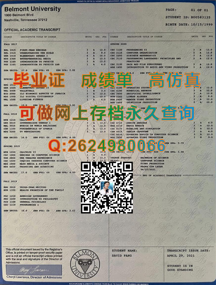 美国贝尔蒙特大学毕业证、成绩单定制|国外大学学位证书样本|美国大学文凭办理|美国学历学位认证书