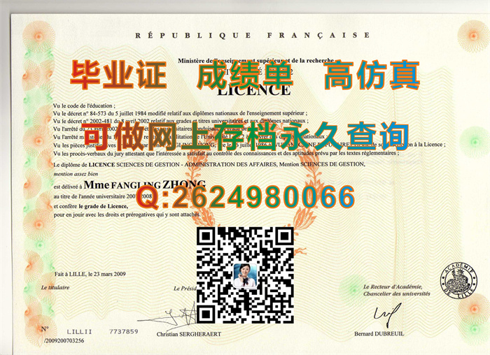 您的位置: 首页 >> 证书样本 >> 法国文凭