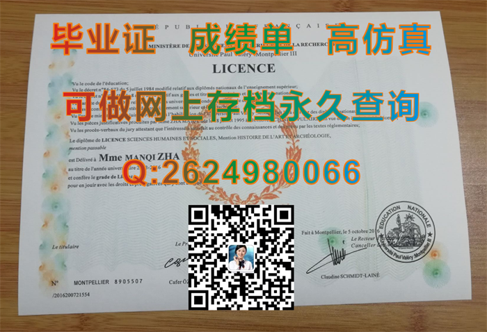 法国蒙彼利埃第三大学毕业证文凭样本定制|University of Montpellier diploma