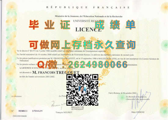 雷恩第二大学毕业证文凭购买|留信网认证永久可查询|Université Rennes 2 - Haute Bretagne成绩单