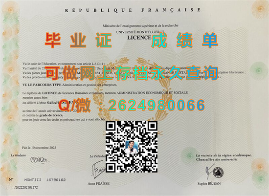 蒙彼利埃第三大学毕业证定制|留信网认证代办|Université Paul-Valéry Montpellier III文凭|UPVM3成绩单