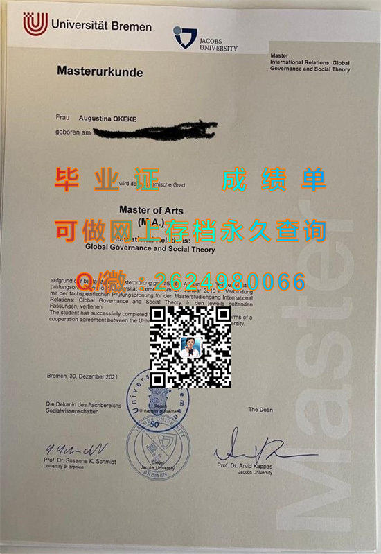 不来梅大学毕业证、文凭、成绩单购买|University of Bremen文凭|德国大学证书样本