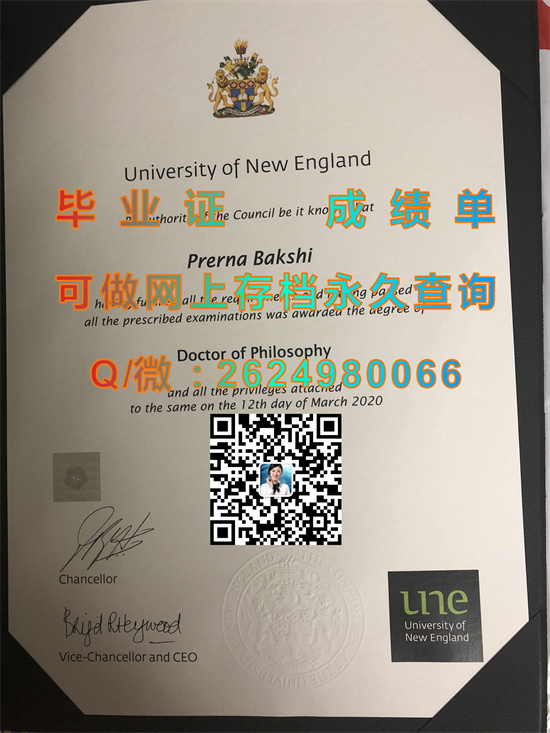 新英格兰大学毕业证外壳样本|University of New England diploma|澳大利亚UNE文凭购买