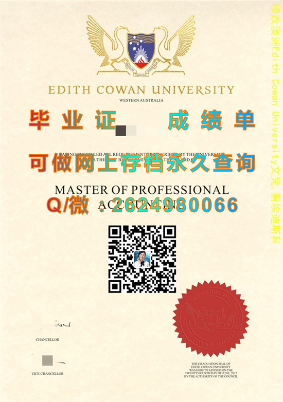 伊迪斯·科文大学毕业证图片样本|Edith Cowan University diploma|(ECU)(定制国外大学毕业证、文凭、学位证书、成绩单、offer)