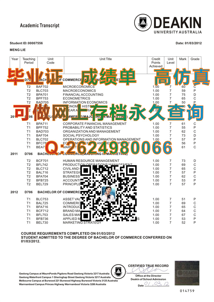 澳大利亚迪肯大学毕业证文凭学位证成绩单及外壳样本参考|Deakin University diploma|留信网认证永久可查询