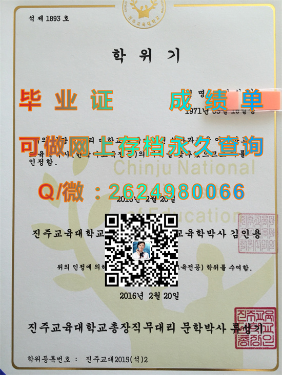 晋州教育大学毕业证、文凭、成绩单、学位证书外壳样本|진주교육대학교|Chinju National Uinversity of Education