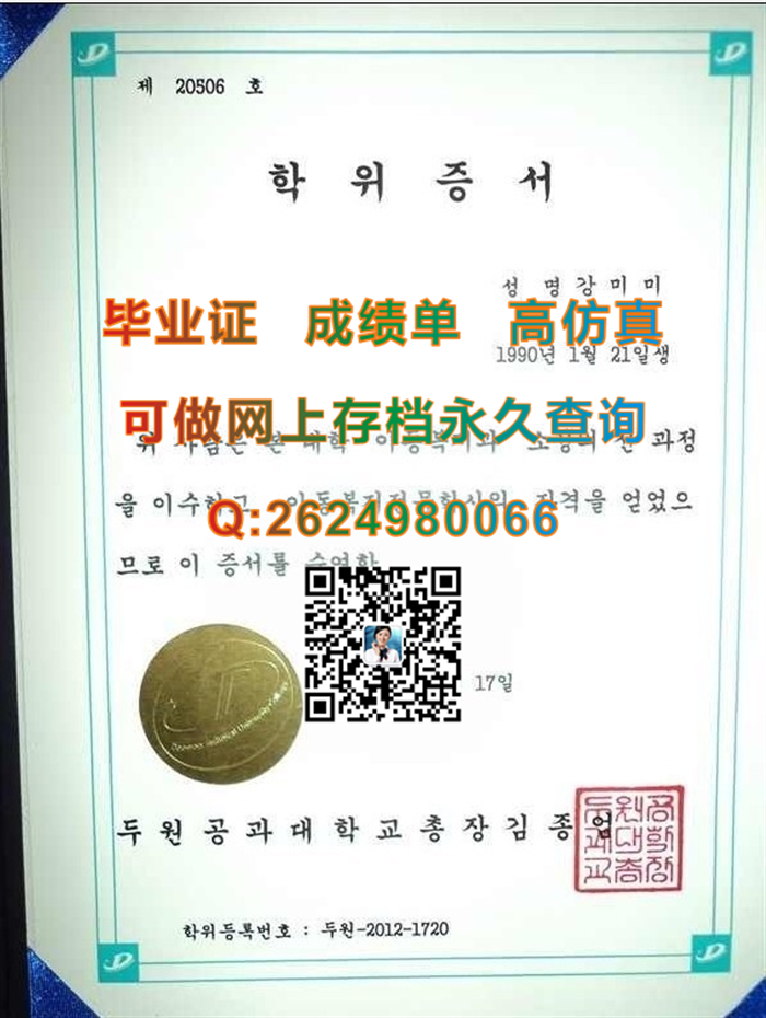 韩国斗源工科大学毕业证文凭学历证书封皮外壳定制|购买韩国大学全套文凭证书|留信网认证入网在哪里办