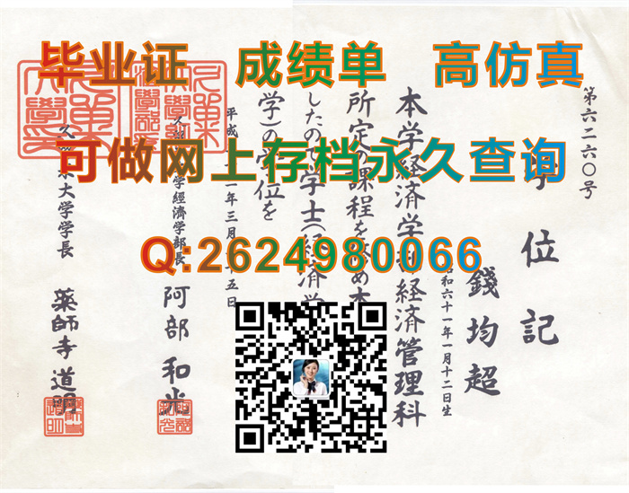 久留米大学毕业证书、文凭、学位记封皮样本|Kurume University文凭|日本大学学位证购买|日本大学文凭图片