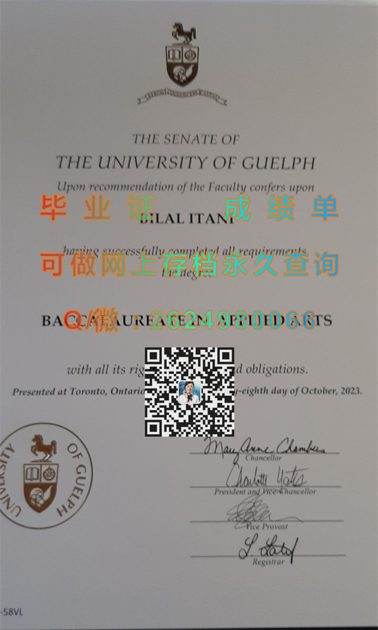 加拿大圭尔夫大学毕业证样本|Universityof Guelph diploma|加拿大贵湖大学文凭定制