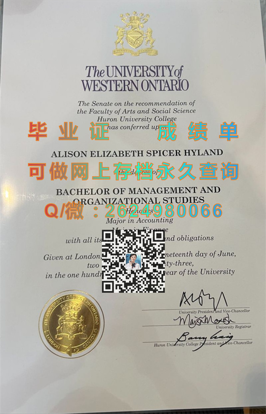西安大略大学毕业证文凭样本|毕业证模版|文凭定制|学位证|韦仕敦大学成绩单图片|Western University(UWO)