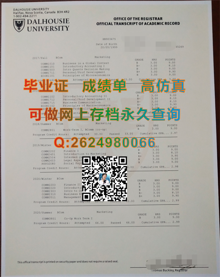 加拿大达尔豪斯大学毕业证文凭成绩单学位证书模版参考|Dalhousie University diploma|留信网认证入网