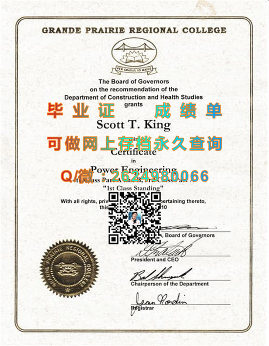 大草原区学院毕业证成绩单样本|Grande Prairie Regional College文凭|诚招代理,专业排版做货